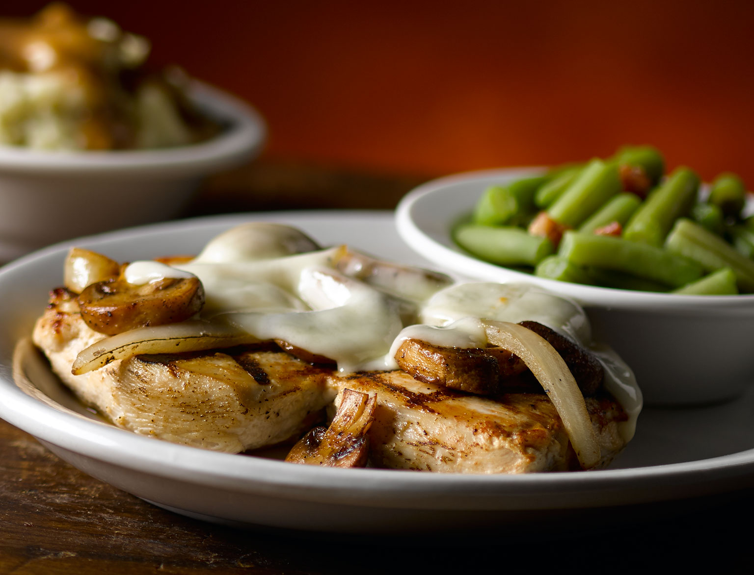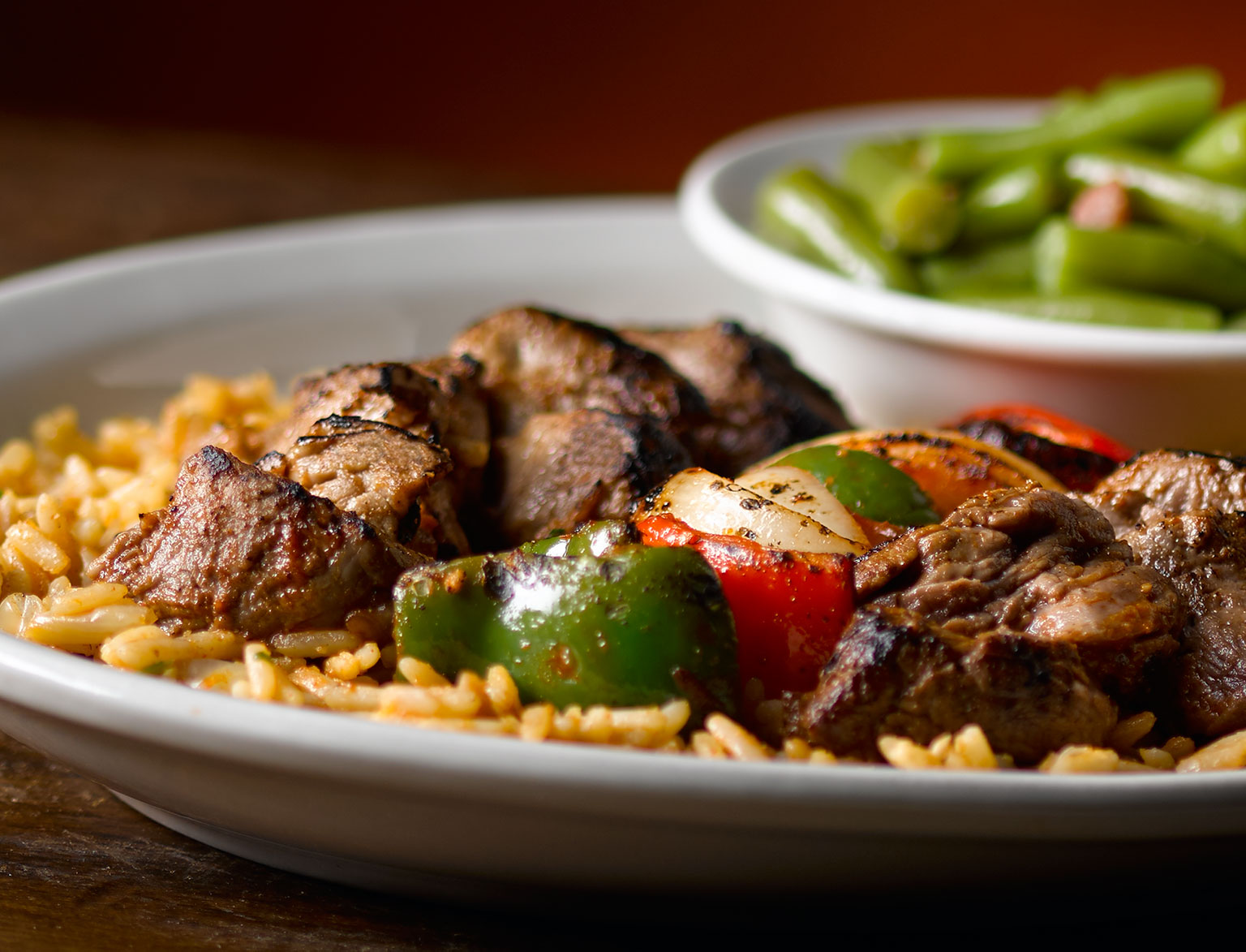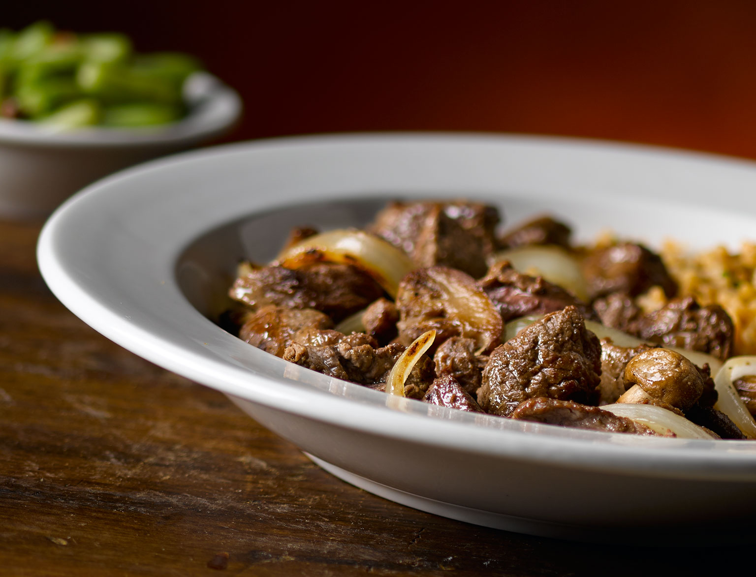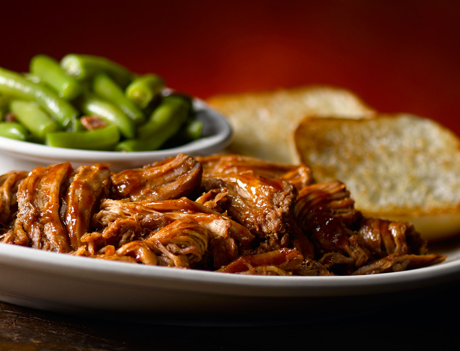 Served on a toasted Texas-sized bun with steak fries and a pickle spear.